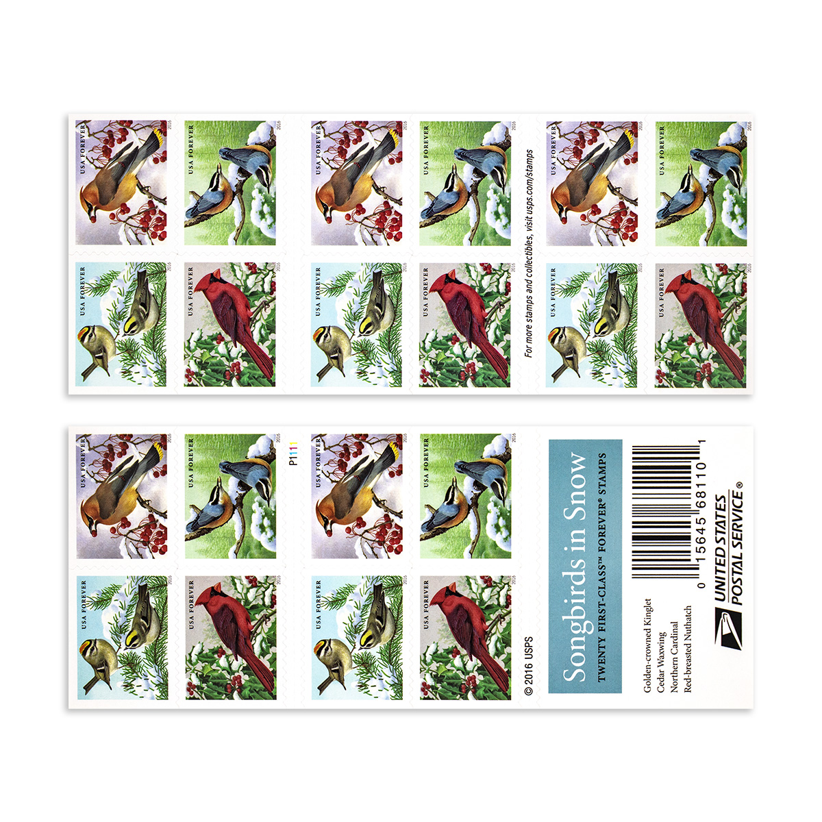 100Pcs Forever 73¢ 2016 US First-Class Forever Stamp - Songbirds in Snow