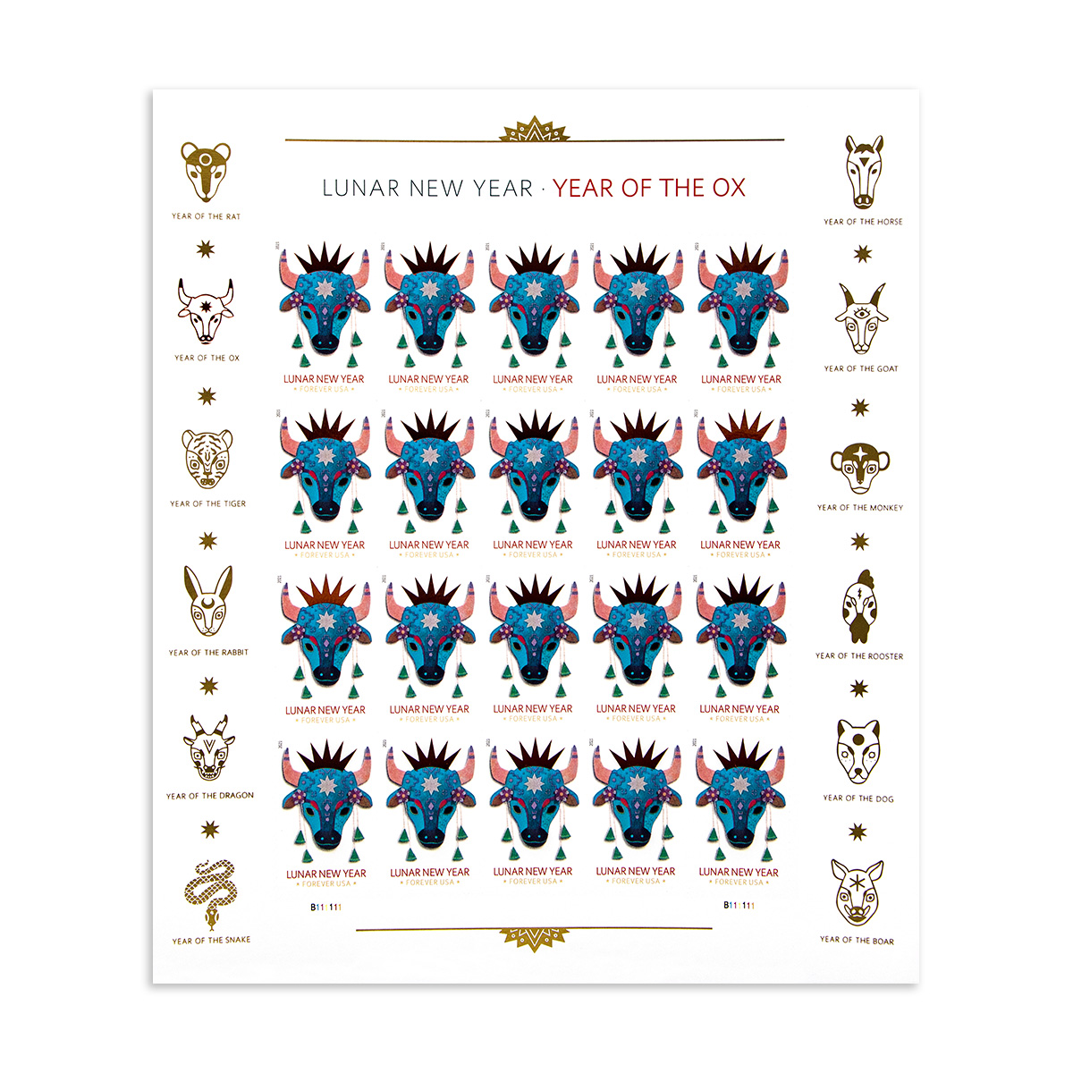 • 100Pcs Forever 73¢ 2021 U.S. Lunar New Year: Year of the Ox Forever Stamps
