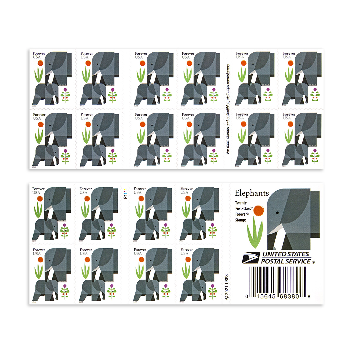 100Pcs Forever 73¢ 2022 US Elephants First Class Forever Stamps