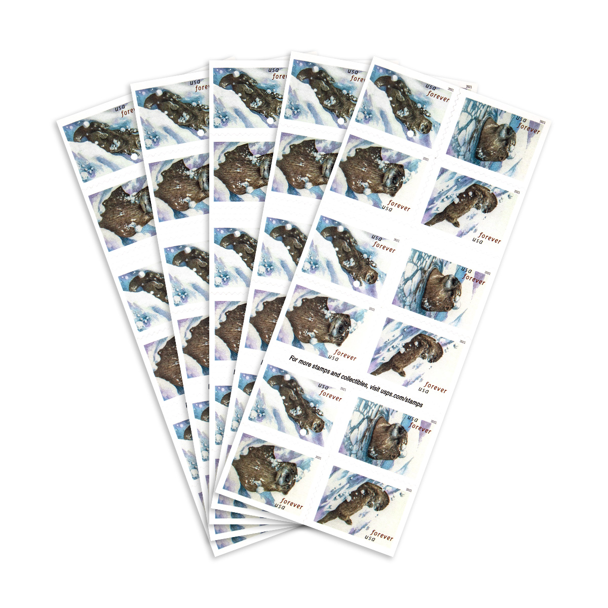 • 100Pcs Forever 73¢ US 2021 Otters in Snow Forever Stamps