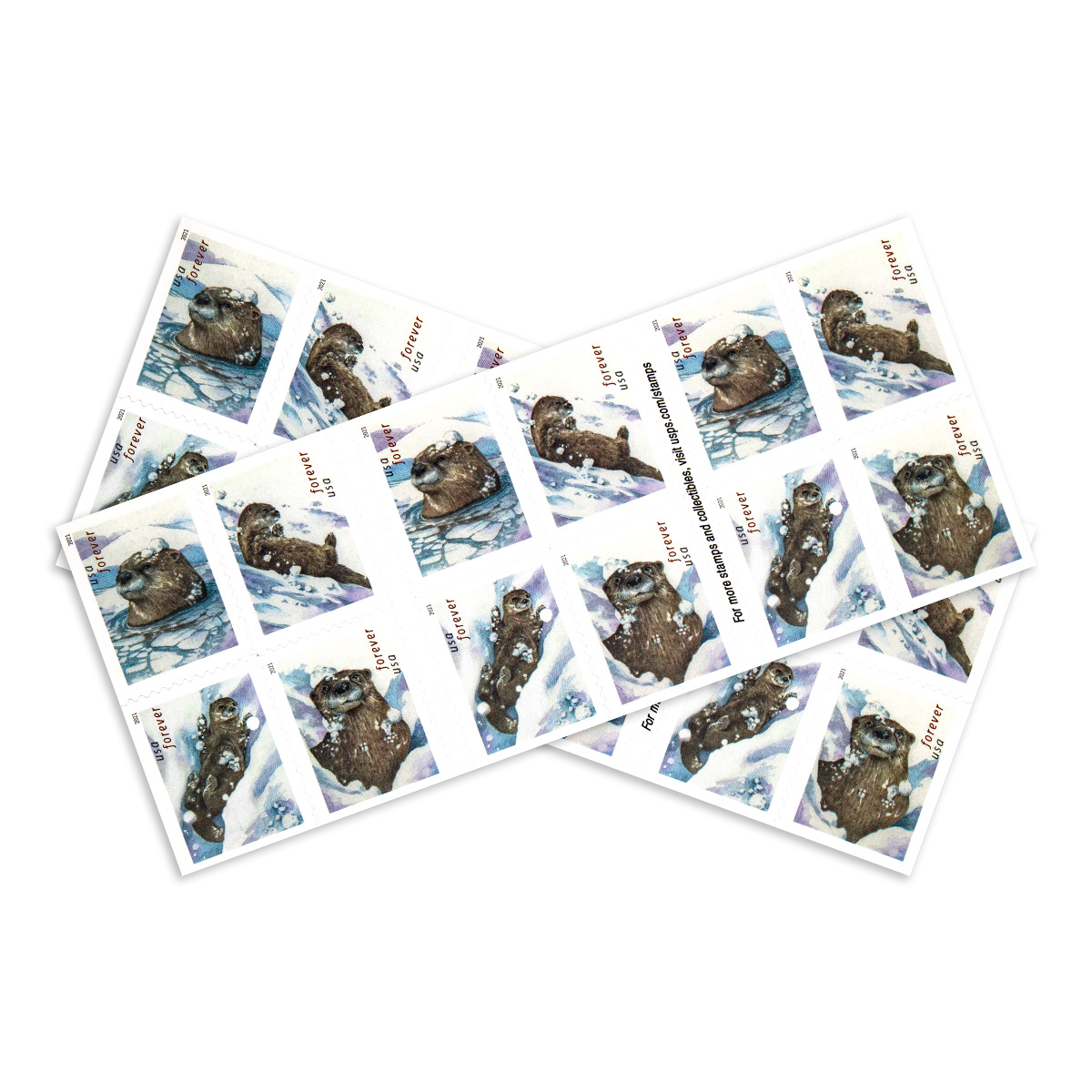 100Pcs Forever 73¢ US 2021 Otters in Snow Forever Stamps
