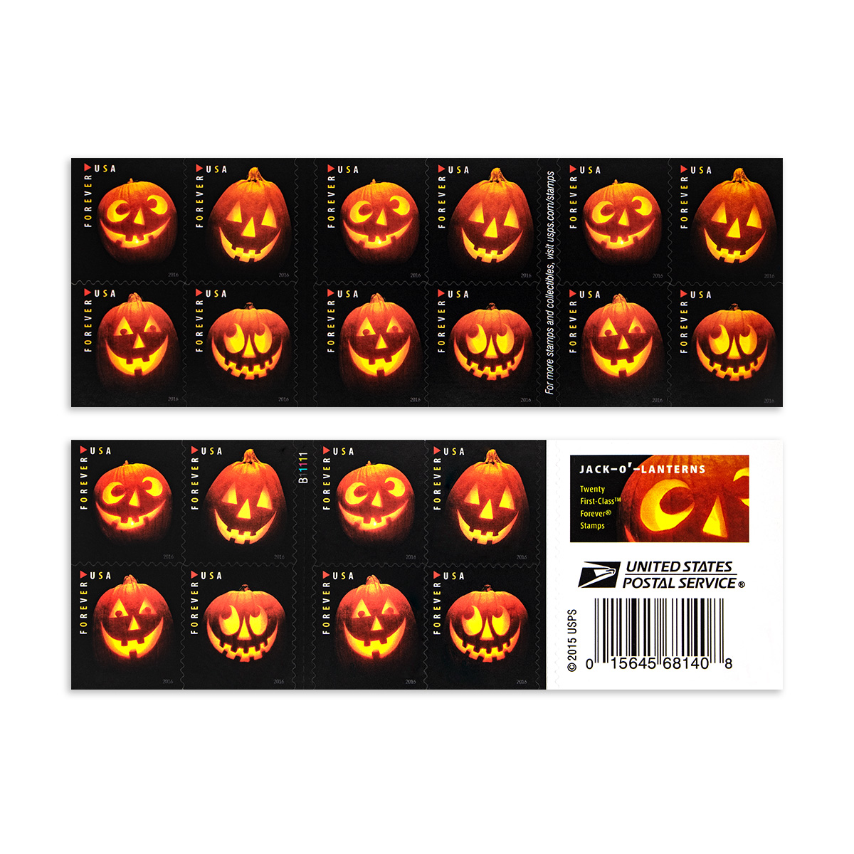 100Pcs Forever 73¢ 2015 First-Class Forever Stamp - Jack-O'-Lanterns: Round Eyes and Four Teeth