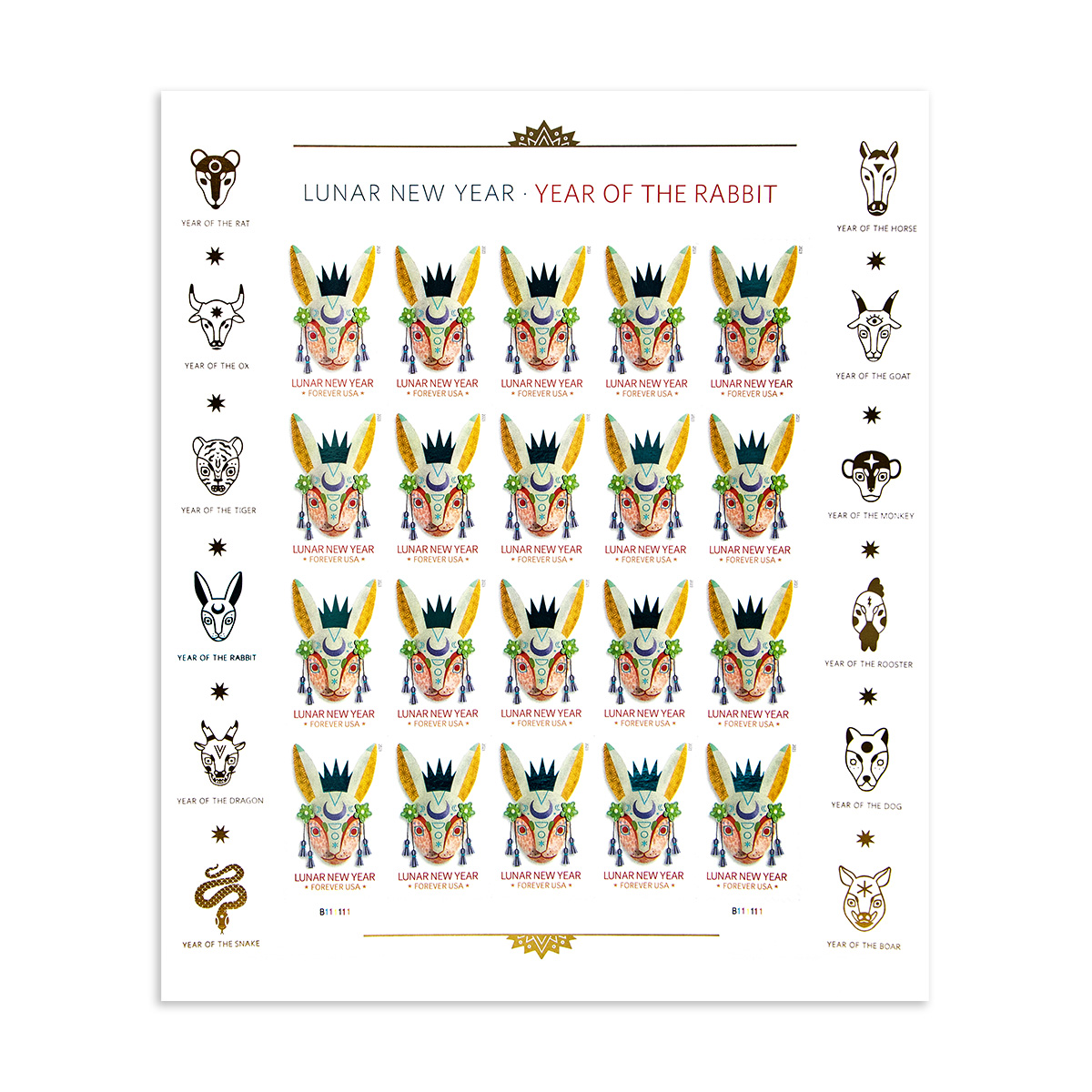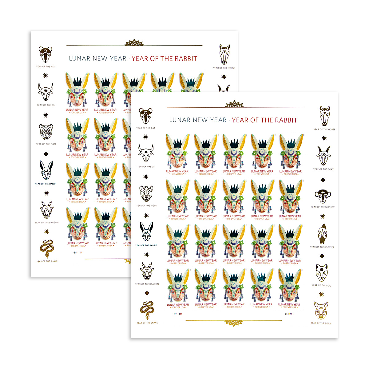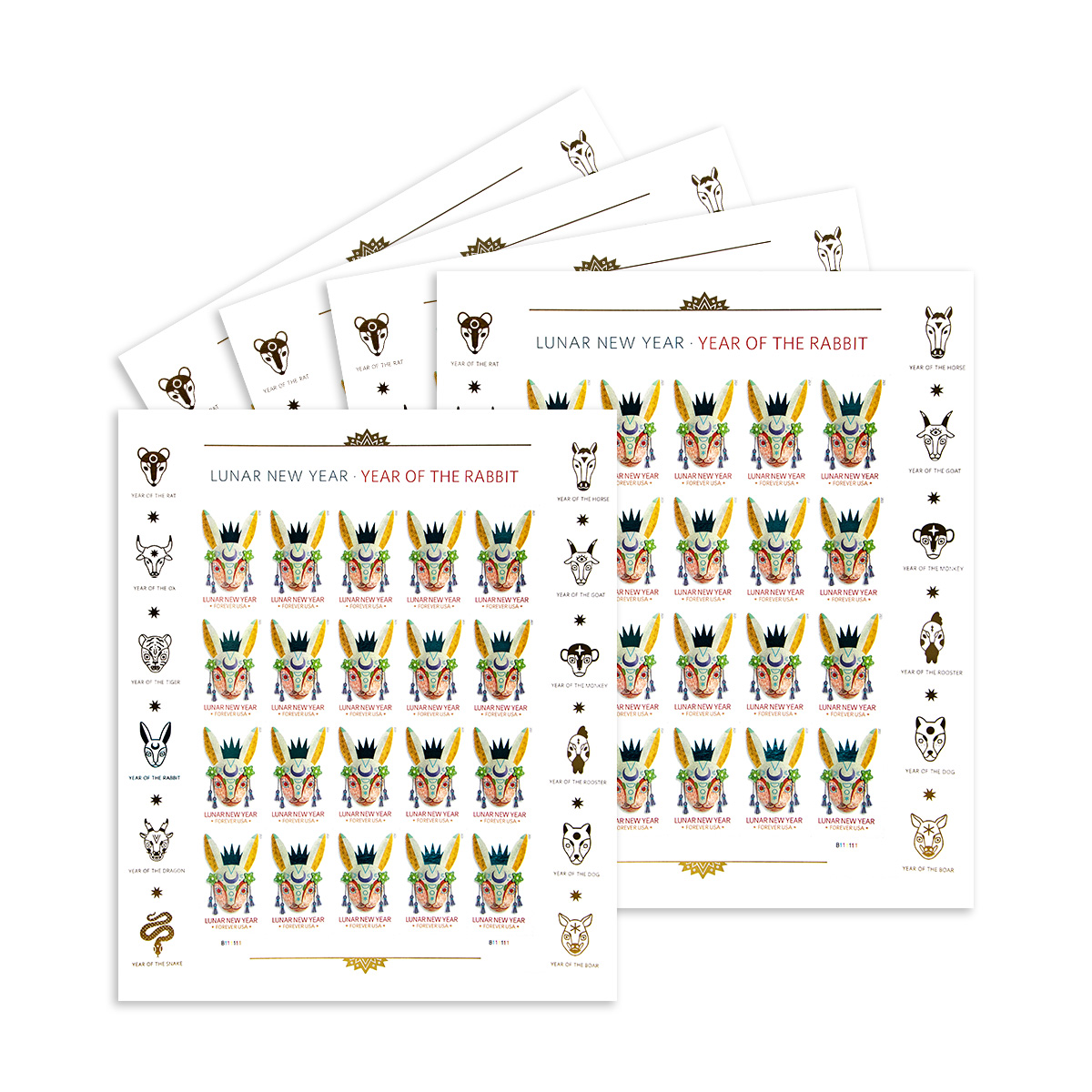 In 2023, the U.S. Postal Service issues the fourth of 12 stamps in the latest Lunar New Year series. The Year of the Rabbit begins January 22, 2023, and ends on February 9, 2024.