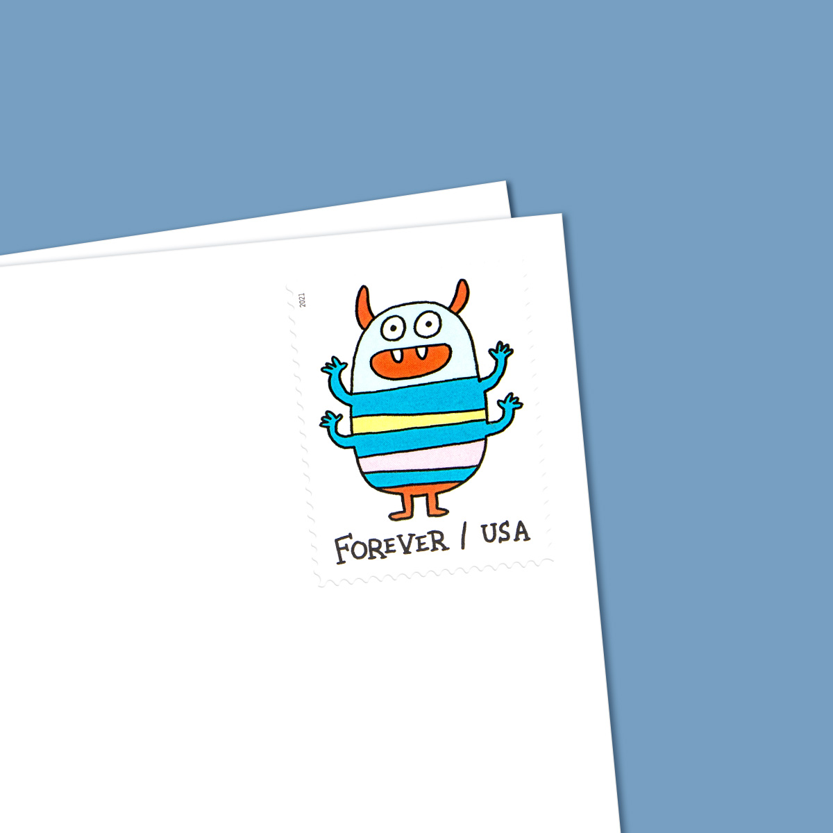 Whether a friendly monster or a scary monster, it’s fun for children to play pretend with parents and friends. With the 2021 Message Monsters stamps, now they can play pretend with folks they might not get to see very often. After all, who wouldn’t want to get a monster in the mail from a mischievous child they love?!