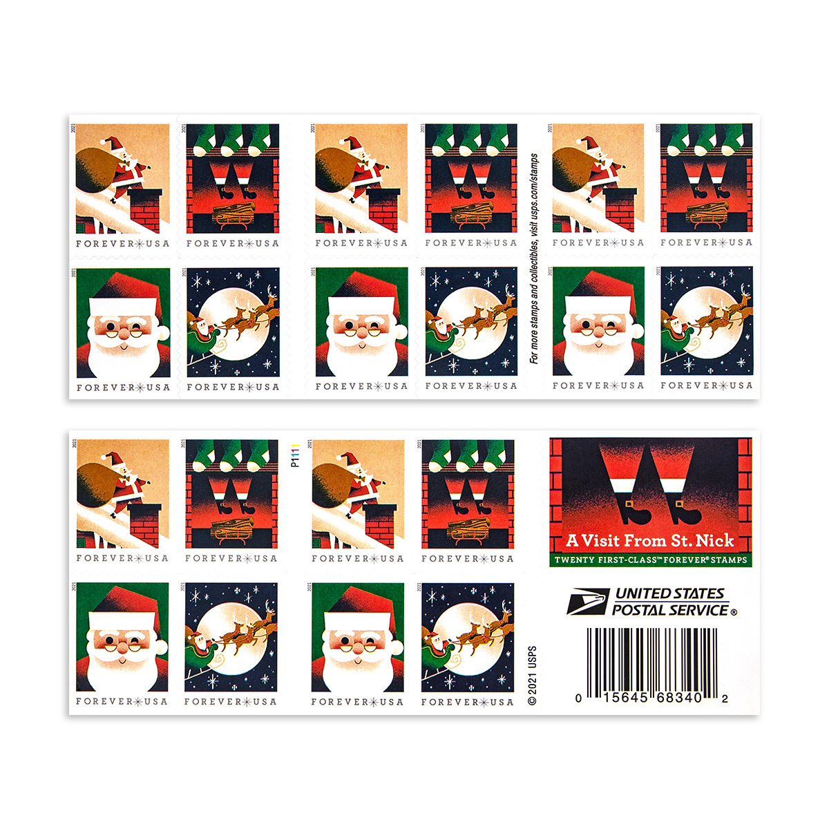 100Pcs Forever 73¢ 2021 US A Visit from St. Nick Forever Stamps