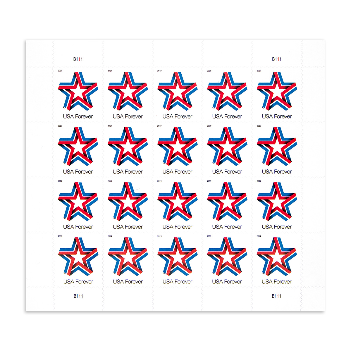 100Pcs Forever 73¢ Forever 2019 USA Star Ribbon Stamps