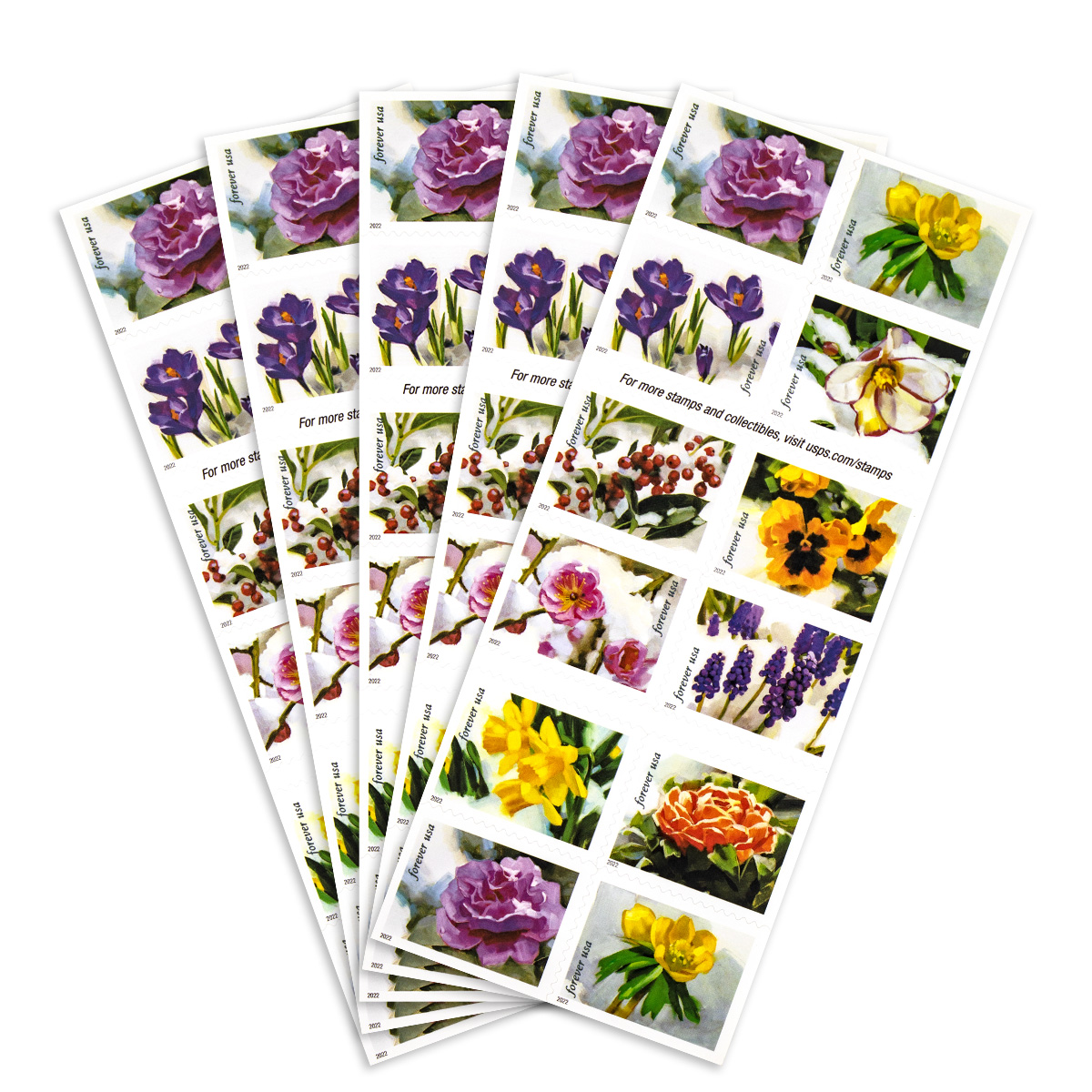 100Pcs Forever 73¢ 2022 First-Class Forever Stamp - Snowy Beauty: Winter Aconite