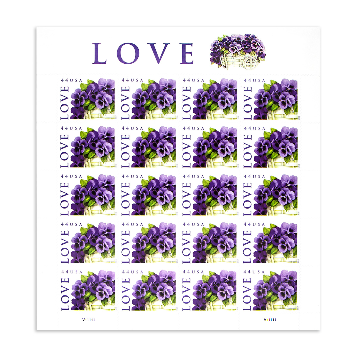 100Pcs Forever 44¢2010 Forever Stamp - Love: Pansies in a Basket