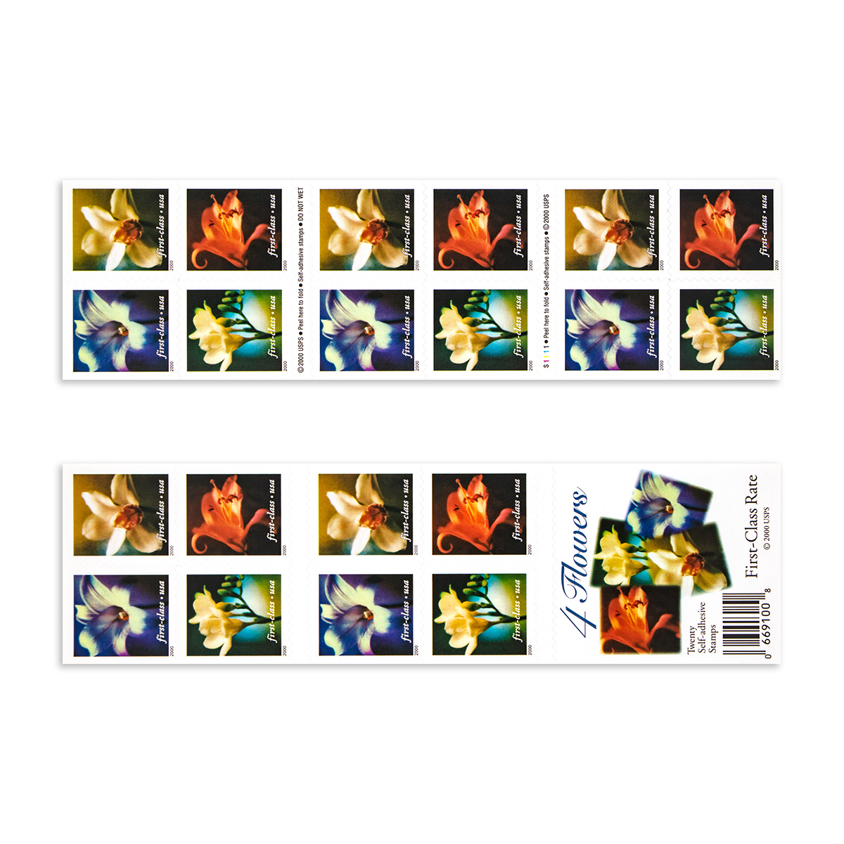 100Pcs Forever 73¢2000 First-Class Forever Stamp - 4 Flowers