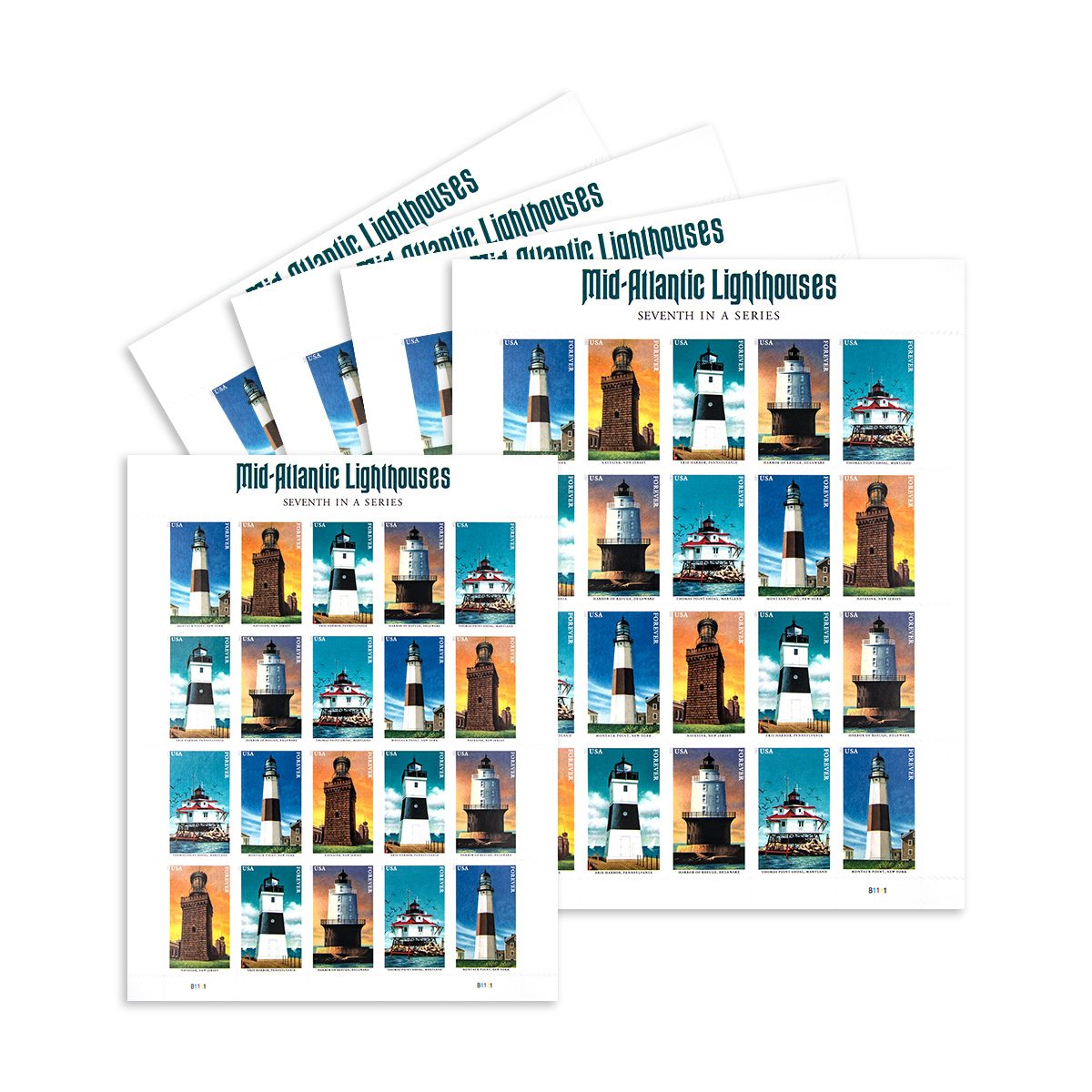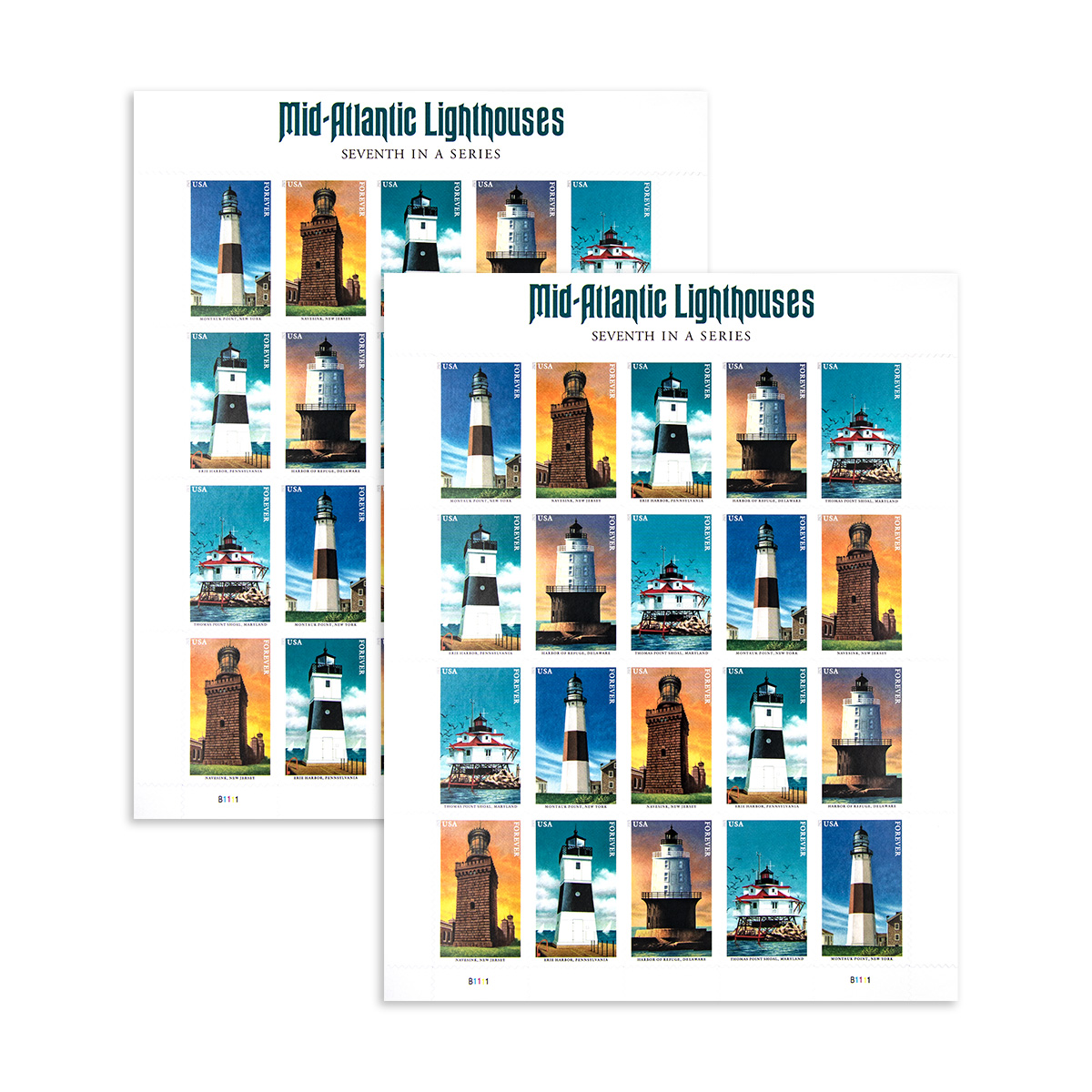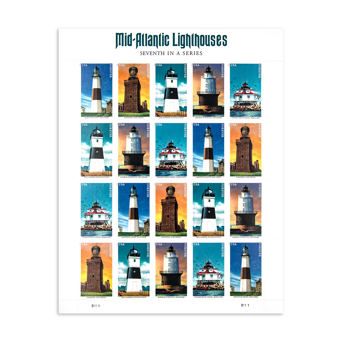 Enjoy the beauty of these classic American coastal towers with this new 11"(L) x 17"(W) flat print of the Erie Harbor Pierhead Lighthouse- one of the five lighthouses depicted on the Mid-Atlantic Lighthouses stamps.